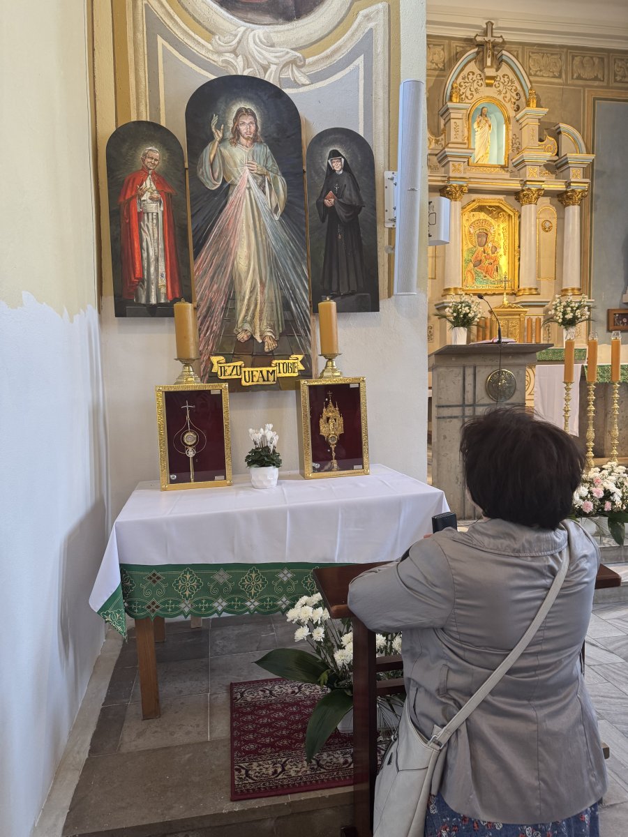 Tam braliśmy udział w uroczystej mszy świętej. Odwiedziliśmy również domek rodzinny Siostry Faustyny we wsi Głogowiec, gdzie wspólnie podziękowaliśmy Panu Bogu za dar życia i powołania Helenki, za jej rodziców i rodzeństwo.